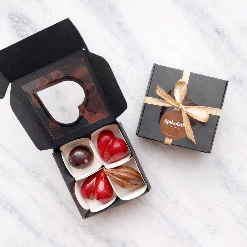 En eksklusiv eske med håndlagde praliner, laget i små batcher med fokus på kvalitet, balanse og rene smaker.